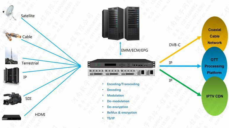 ??支持DVB和IPTV混合輸出模式,可以將任意輸 入源的多節目流轉化為單節目流輸出
